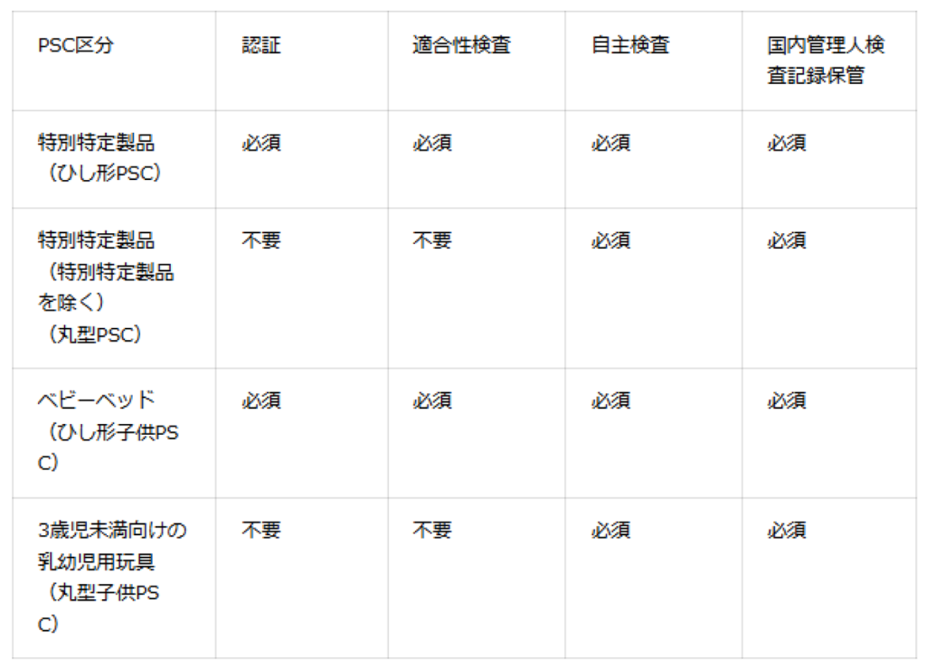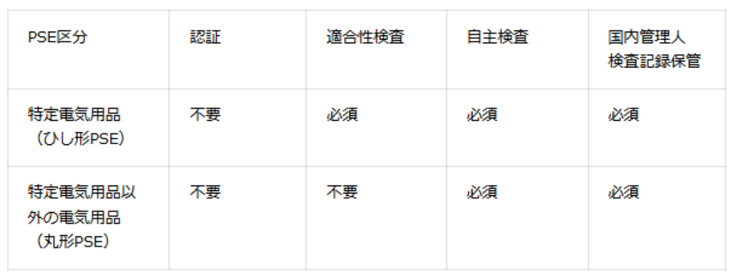 詳しくは、電気用品安全法や消費生活用製品安全法その他関連法令をご確認ください。