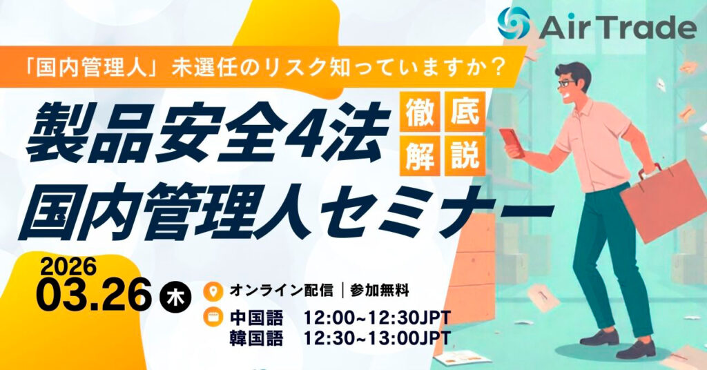 当从海外进口和销售电器用品、燃气器具和消费品时,根据日本法律(产品安全四法),海外公司本身作为“特定进口商”负责。在这里,我们将解释作为指定进口商申报所需的材料以及国内管理人服务。