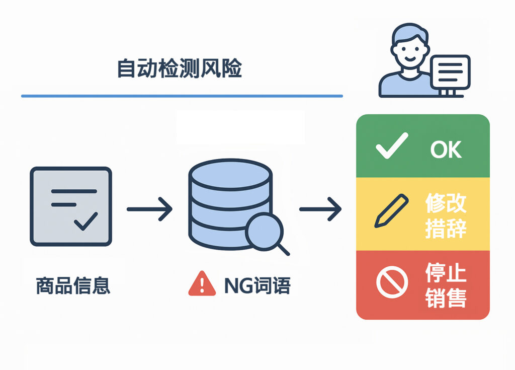 商品上架或更新时应用,违规风险大幅降低。